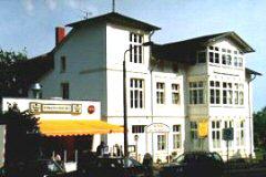 | Das Haus heute mit dem Restaurant in der Strandstraße 9 in Heringsdorf... | ...und die Tafel mit der Erinnerung an das Jahr 2006 im Fischerweg 9a. |